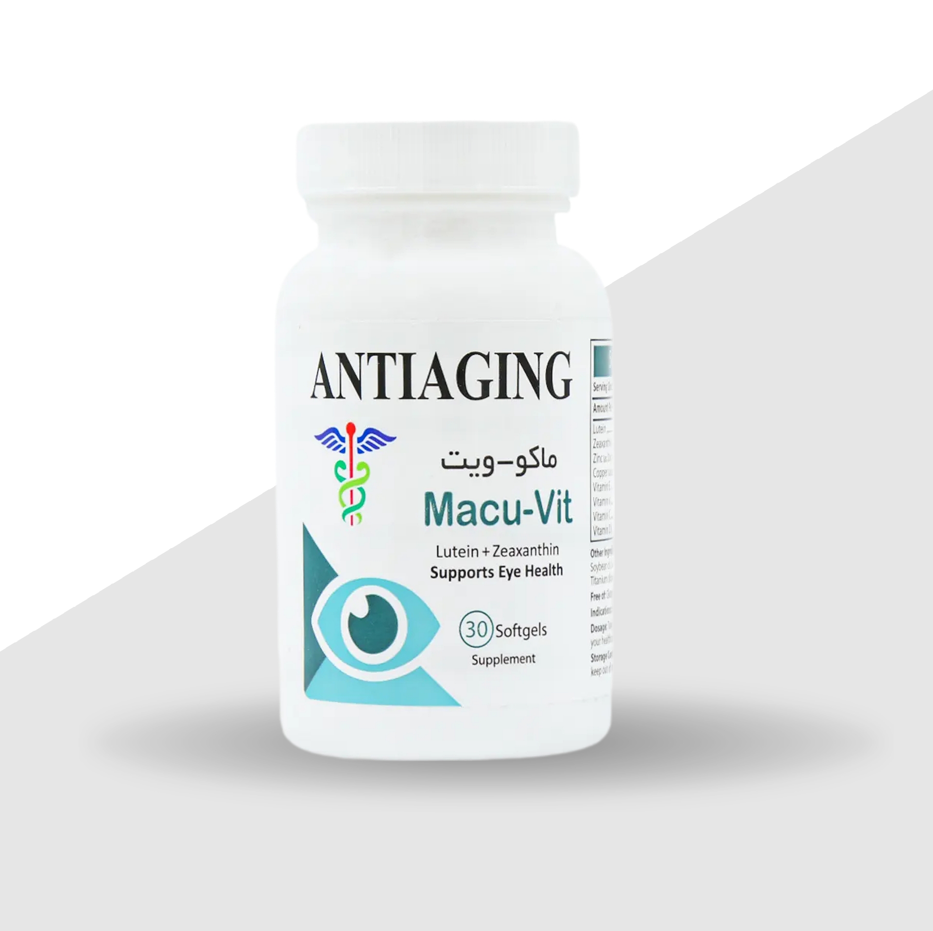 ماکوویت آنتی ایجینگ از انواع بهترین قرص برای تقویت بینایی چشم است که به حفظ سلامت چشم و جلوگیری از مشکلات چشمی مانند آب مروارید و دژنراسیون ماکولار وابسته به سن کمک میکند. کپسول آنتی ایجینگ دارای 20 میلیگرم لوتئین و 1.25 میلیگرم زآگزانتین در کنار املاح و ویتامینهای مورد نیاز برای حفظ سلامت سیستم بینایی است و اثرات مخرب استرس اکسیداتیو ناشی از UV بر چشم را کاهش میدهد.