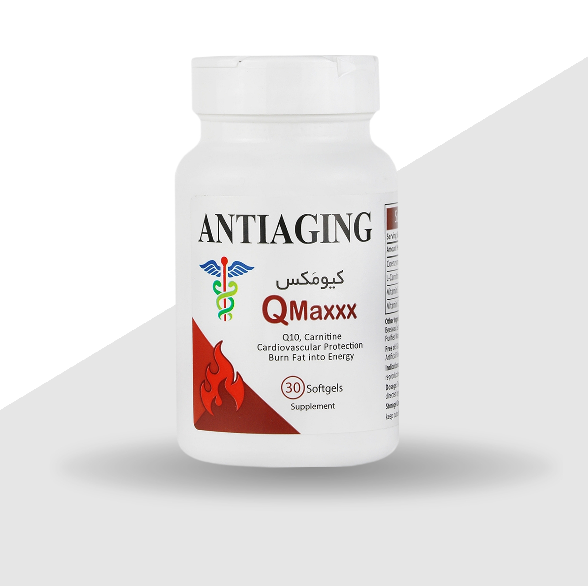 - کیومکس، حاوی کوآنزیم Q10، ال کارنیتین، ویتامین E و ویتامین C