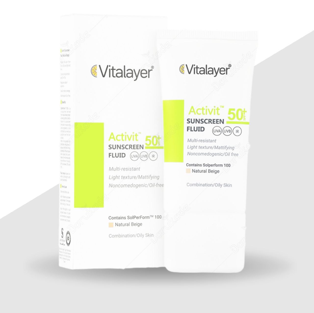 ضد آفتاب فلوئید پوست چرب SPF50 اکتی ویت ویتالیر بژ طبیعی - 50 میلی لیتر